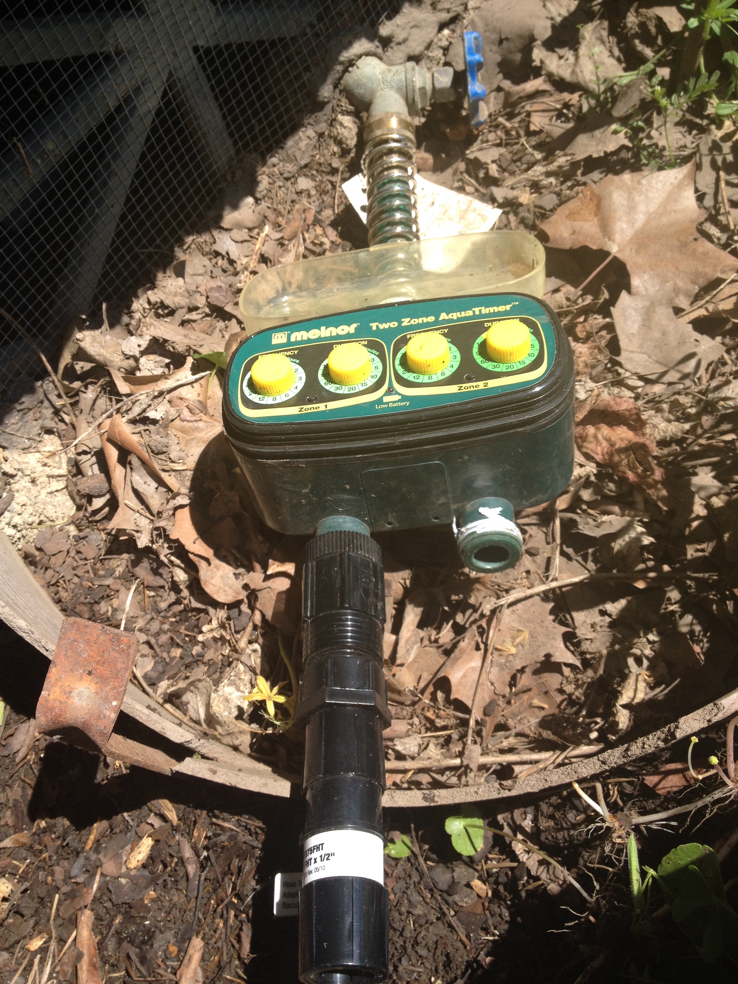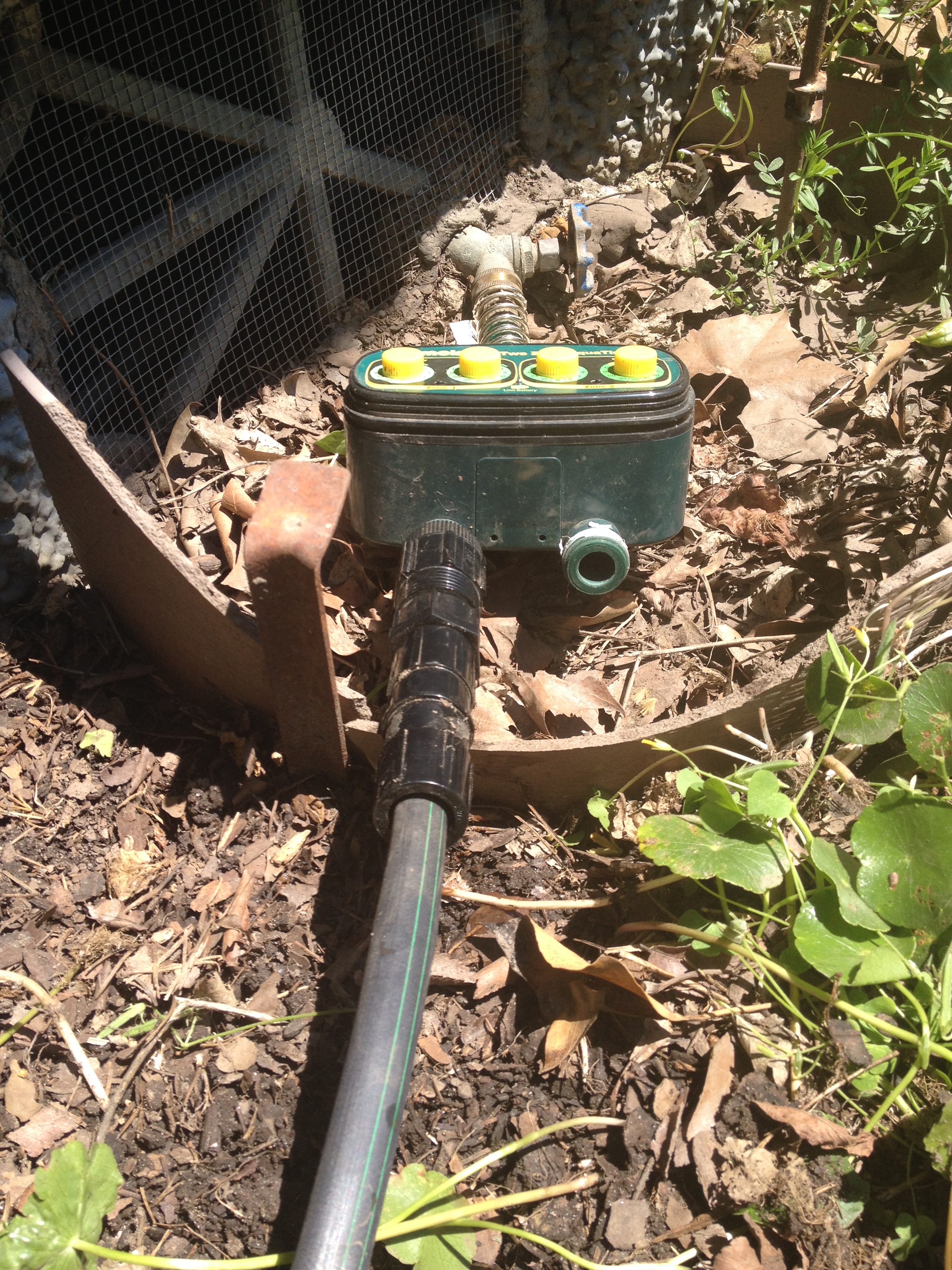 If you have grass, a sprinkler system can be helpful (some day, I will get rid of grass and go to an all drip system, but today is not that day). You just have to know how much water it emits. I like to use the pie pan test. I place pie pans at random places in the yard and see how much water is in them after ten or so minutes of sprinkling. Then I can calculate how long I need to leave the sprinkler on in each zone.