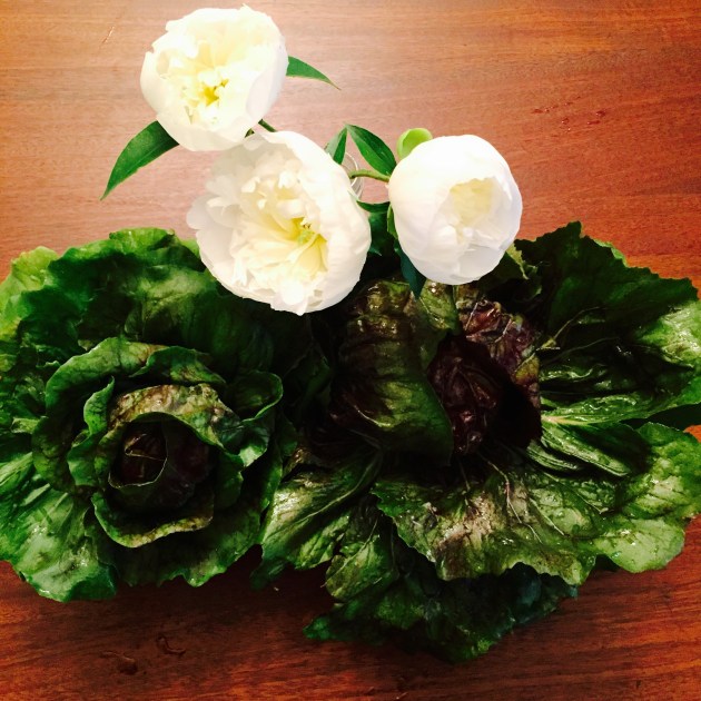 We had a very mild winter here in middle Georgia, so I was not sure that any peonies would bloom. But here’s what I found this morning, along with two heads of lettuce that are ready to eat!